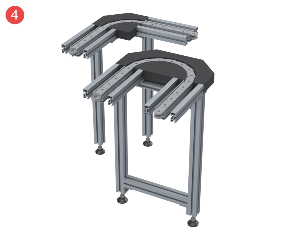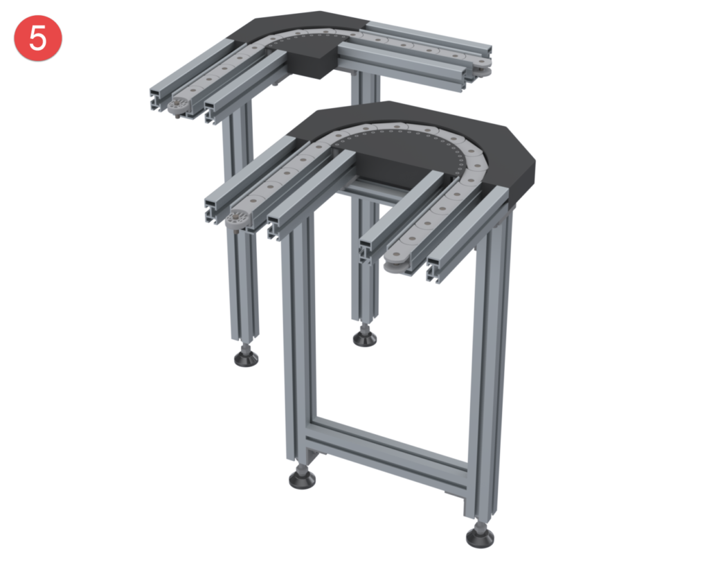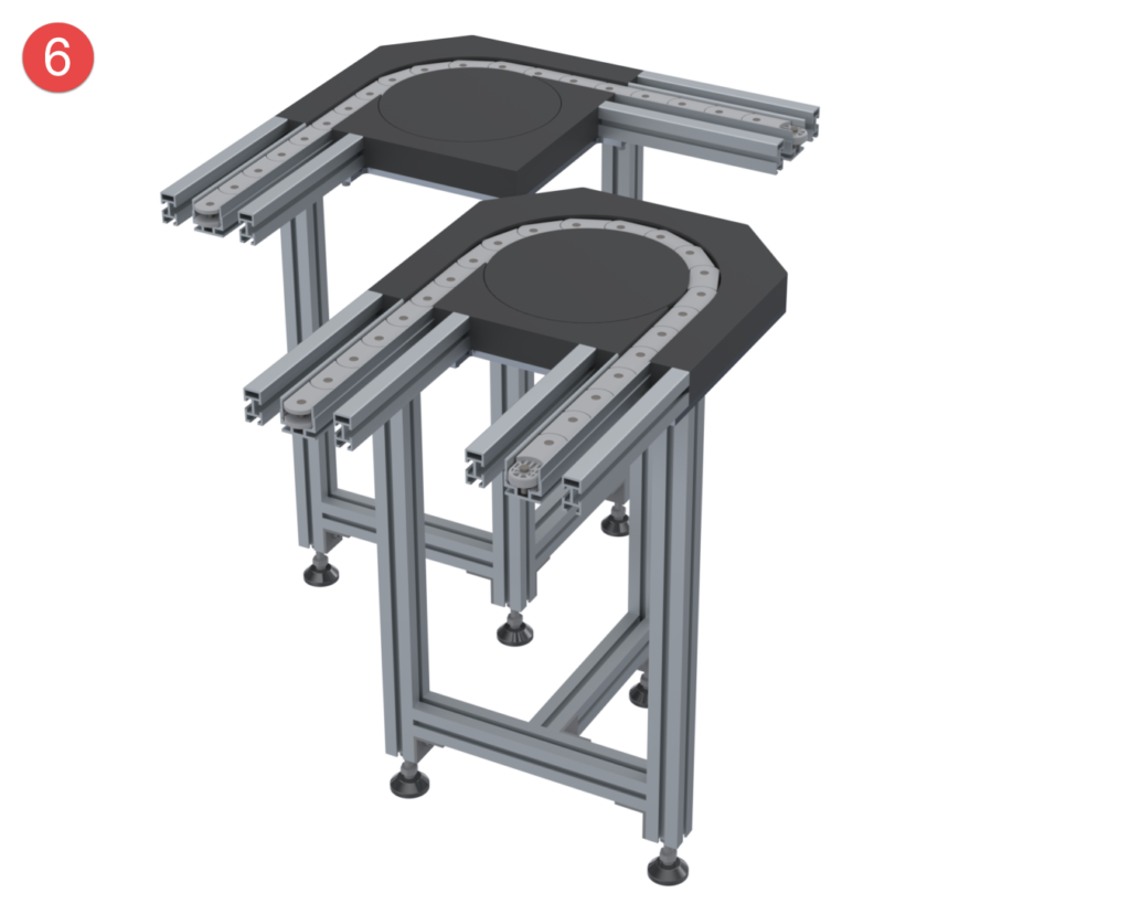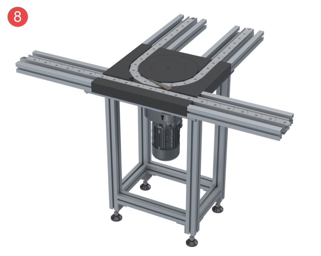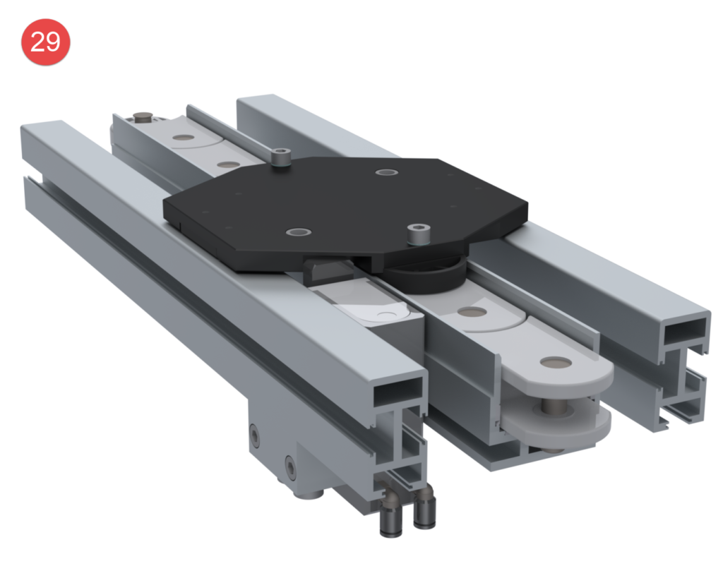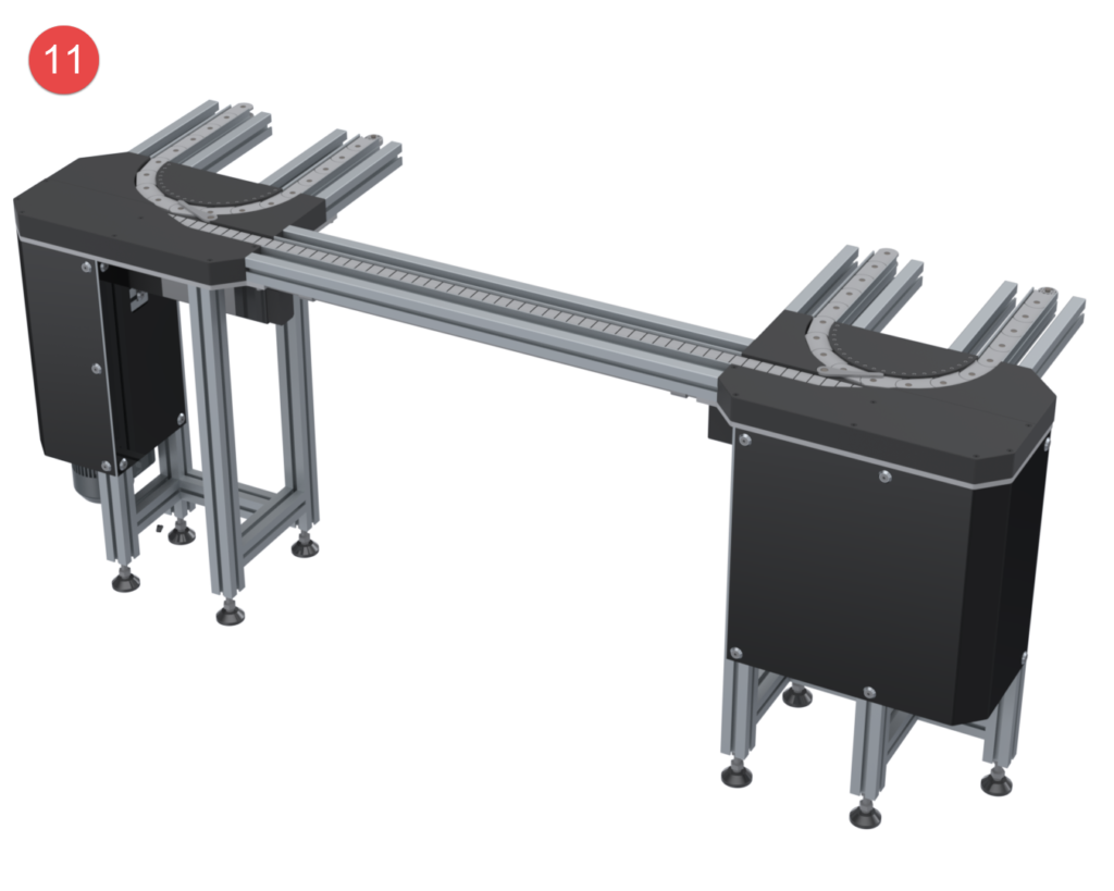 The wide range of modules available for the Sigma transfer system guarantees maximum flexibility when changes are made to premises, production figures, or production processes. Long, costly setup and changeover times and the associated forced downtime are avoided. The transfer system is delivered either fully assembled or, if requested by the customer, preassembled in modules for self-assembly.