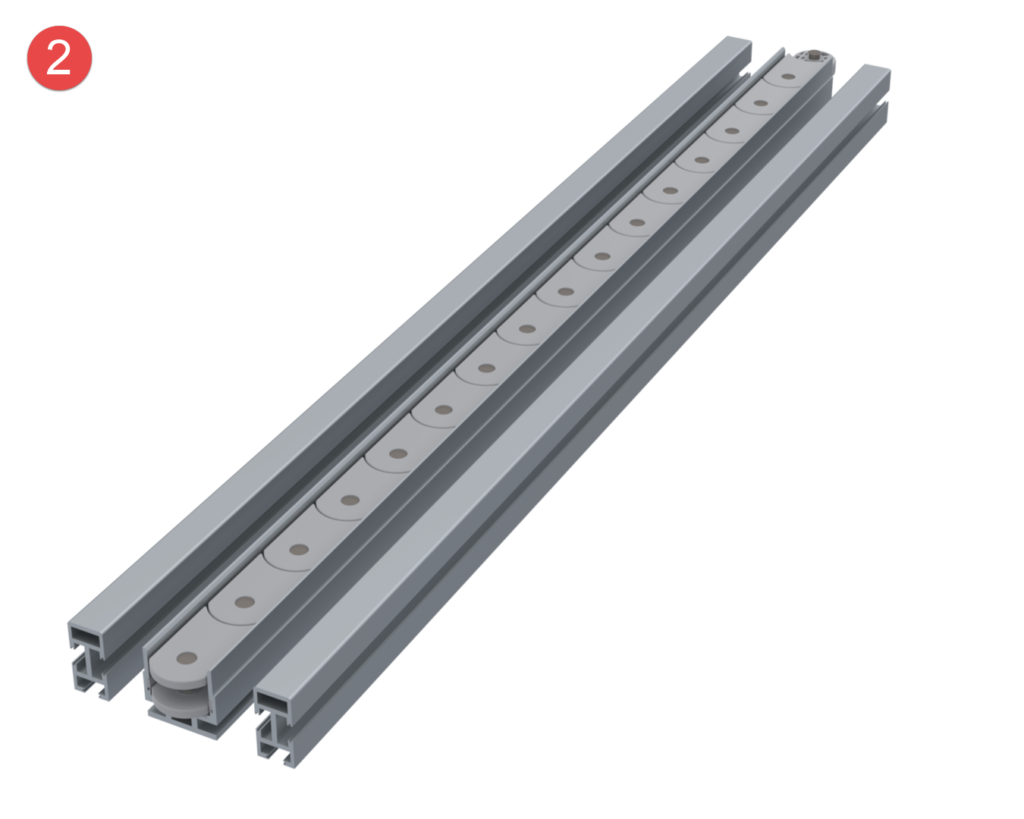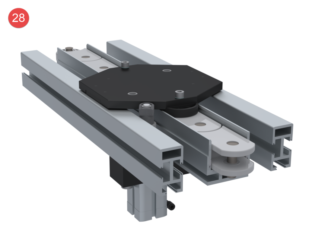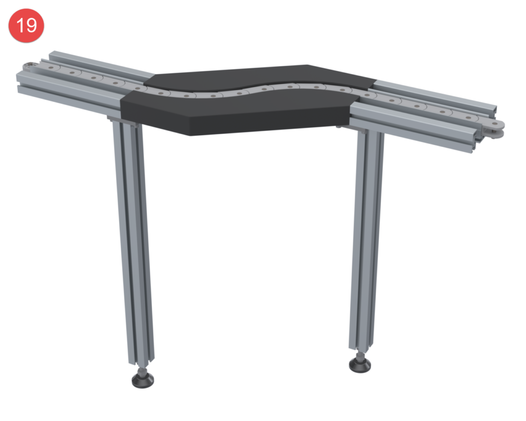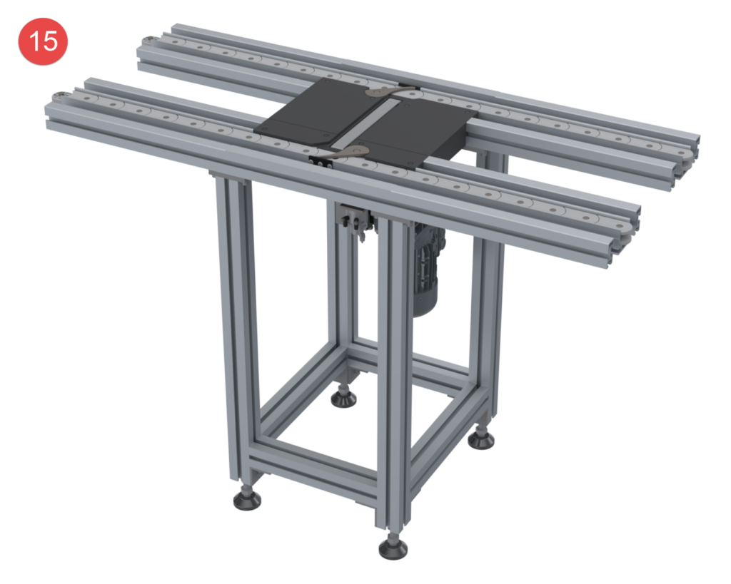 The transfer system with only one chain profile and two side profiles impresses with its simple and clear system structure.