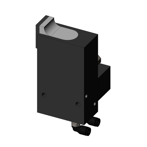 Mit dem Anhaltemodul können die Werkstückträger auf der Transportkette an einer beliebigen Stelle angehalten werden. Dazu wird mit einem Kurzhubzylinder der Anhaltebolzen zum Stoppen der Werkstückträger ausgefahren resp. zum Entlassen der Werkstückträger eingefahren.